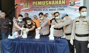 ” Kepada semua elemen Masyarakat di Kabupaten Musi Banyuasin untuk membantu Kepolisian secara bersama-sama dalam menuntaskan dan memerangi Penyalahgunaan narkoba, laporkan kepada pihak Kepolisian terdekat apabila menemukan tindak pidana Narkotika atau secara langsung melaporkan kepada layanan pengaduan Satres Narkoba Polres Muba pada nomor 0821-8045-3746,” pungkas Kapolres.