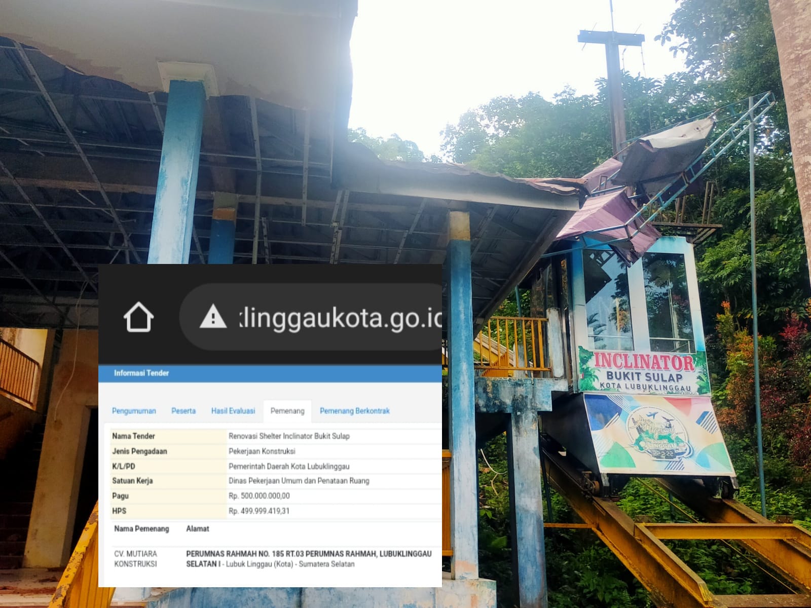 Kegiatan tersebut, dengan judul Renovasi Shelter Inclinator Bukit Sulap yang dimenangkan oleh CV. Mutiara Konstruksi yang satuan kerja kegiatan tersebut berada di Dinas Pekerjaan Umum dan Penataan Ruang (PUPR) Kota Lubuklinggau.