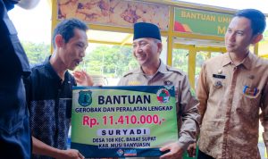 Dalam kegiatan ini dilaksanakan pula penyerahan berbagai bantuan oleh Pj Bupati Muba diantaranya, berupa bedah rumah, sembako, kursi roda, gerobak gorengan, dan unit pengolah pupuk organik (UPPO) kepada gabungan kelompok tani.