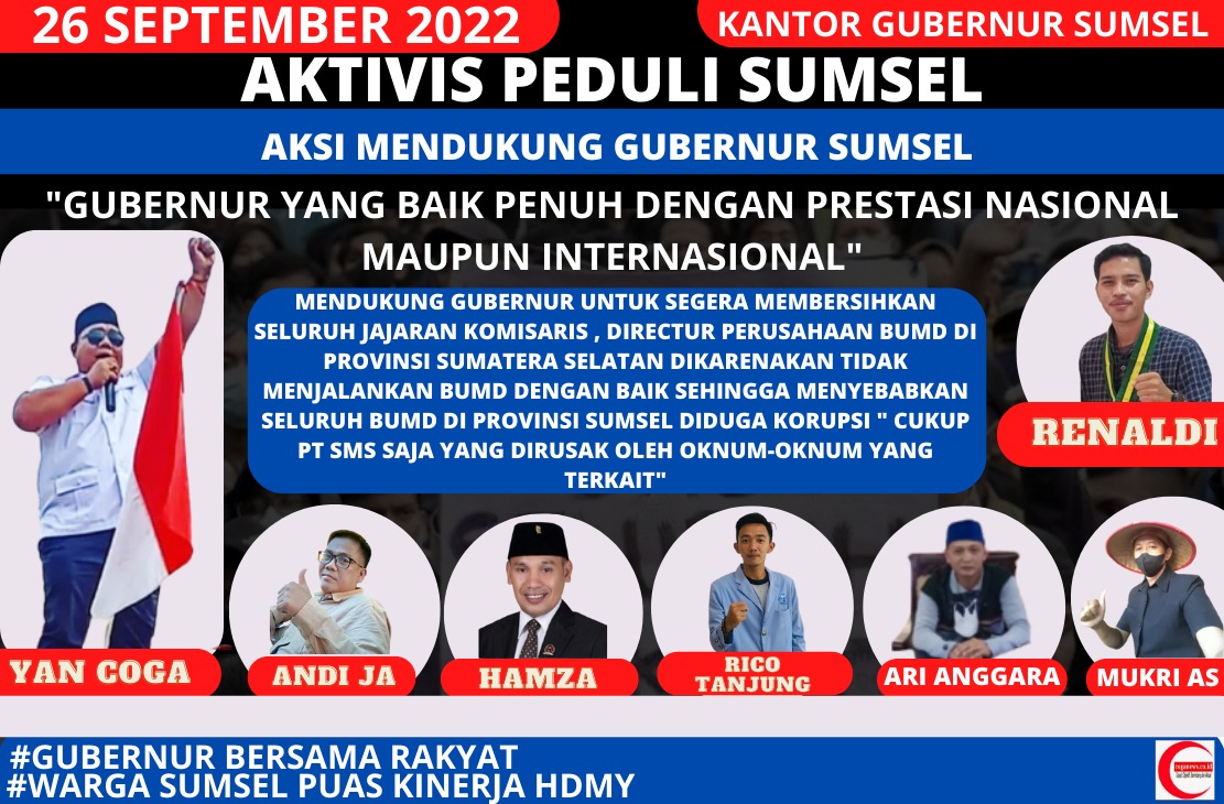 Palembang, Coganews.co.id,- Aksi Aktivis Peduli SUMSEL kali ini mengusung tema “Gubeenur Yang Baik Penuh Dengan Prestasi Nasional Maupun Internasional”