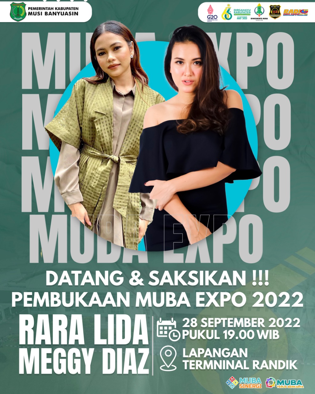 “Malam puncak HUT Muba dan pembukaan Muba Expo akan berlangsung di Plataran Terminal Randik, pukul 19:00 – selesai, berlangsung dari 28 September – 4 Oktober 2022, ratusan tenant UMKM dan kuliner bakal bertengger disana. Selain itu, untuk penutupan Muba Expo juga ada artis penyanyi yang bakal memeriahkan rangkaian HUT Muba ke-66 ini, yaitu Bellista dan Asep Paken nantinya,” ungkapnya.