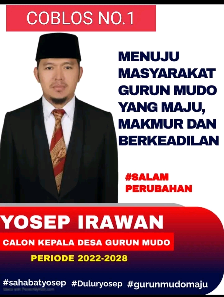 Pilih No 1 Yosep Irawan sebagai Kades Gurun Mudo yang Maju dan Berkeadilan.