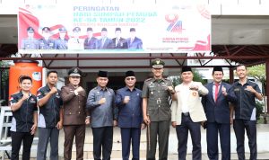 SEKAYU, Coganews.co.id – Pemerintah Kabupaten Musi Banyuasin (Muba) menggelar Upacara Peringatan Hari Sumpah Pemuda ke-94 Tahun 2022 di Halaman Kantor Bupati Muba, Senin (31/10/2022). Pj Bupati Muba H Apriyadi bertindak sebagai Inspektur Upacara dan diikuti peserta dari unsur jajaran ASN, Polri, TNI, organisasi kepemudaan, serta perwakilan siswa SMA dan SMK Kabupaten Muba.