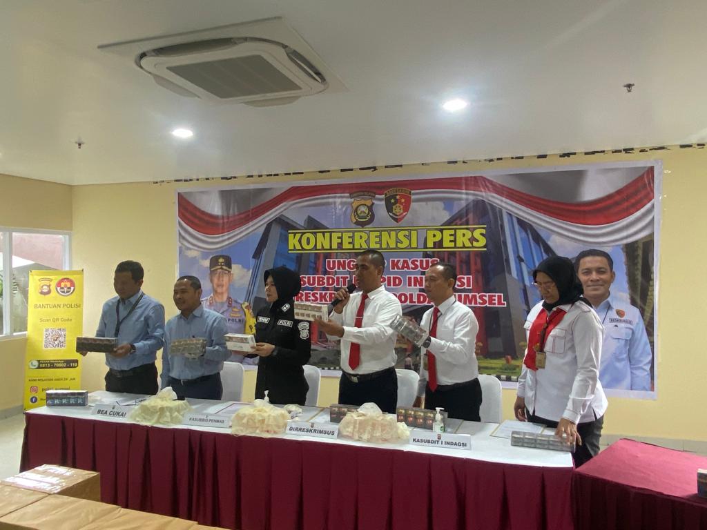 Konferensi pers dipimpin langsung Wadir Ditreskrimsus AKBP Putu Yudha Prawira SIK.,MH. didampingi oleh Kasubbid humas Polda Sumsel AKBP yenni Diarty, Kasundit I Indagsi Ditreskrimsus Polda Sumsel, dan Kabid P2 Bea cukai Kanwil DJBC Sumbagtim Denny.