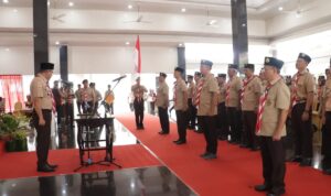 Coganews.co.id | SEKAYU, – Pj Sekda Muba Musni Wijaya SSos MSi sekaligus Ketua Kwartir Cabang Gerakan Pramuka Kabupaten Muba melantik Ketua dan Pengurus Majelis Pembimbing Ranting Gerakan Pramuka Kecamatan Sekayu, Kecamatan Babat Supat, Kecamatan Jirak Jaya dan Kecamatan Lawang Wetan Masa Bakti 2023 – 2026, di Pendopoan Griya Bumi Serasan Sekate, Kamis (16/3/2023).