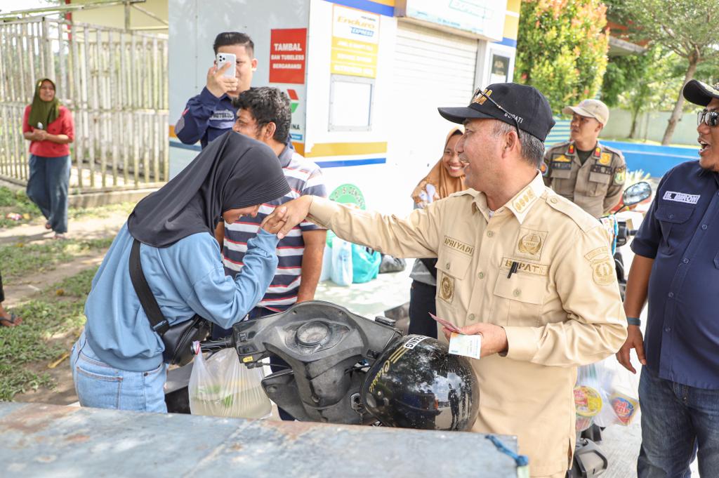 Setibanya di pos pengamanan yang tepat berada di depan pom bensin, Apriyadi menyempatkan berbincang dengan sejumlah warga dan pedagang yang berjualan di wilayah itu. Bahkan pedagang dan warga yang ada di sekitar pom bensin mendapat THR dari H. Apriyadi sapaan akrab beliau.