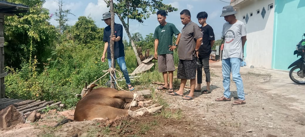 Pengurus Daerah Ikatan Wartawan Online (PD IWO ) kabupaten Musi Banyuasin membagikan Ratusan Kantong Daging Sapi Qurban, Kamis (29/6/2023).