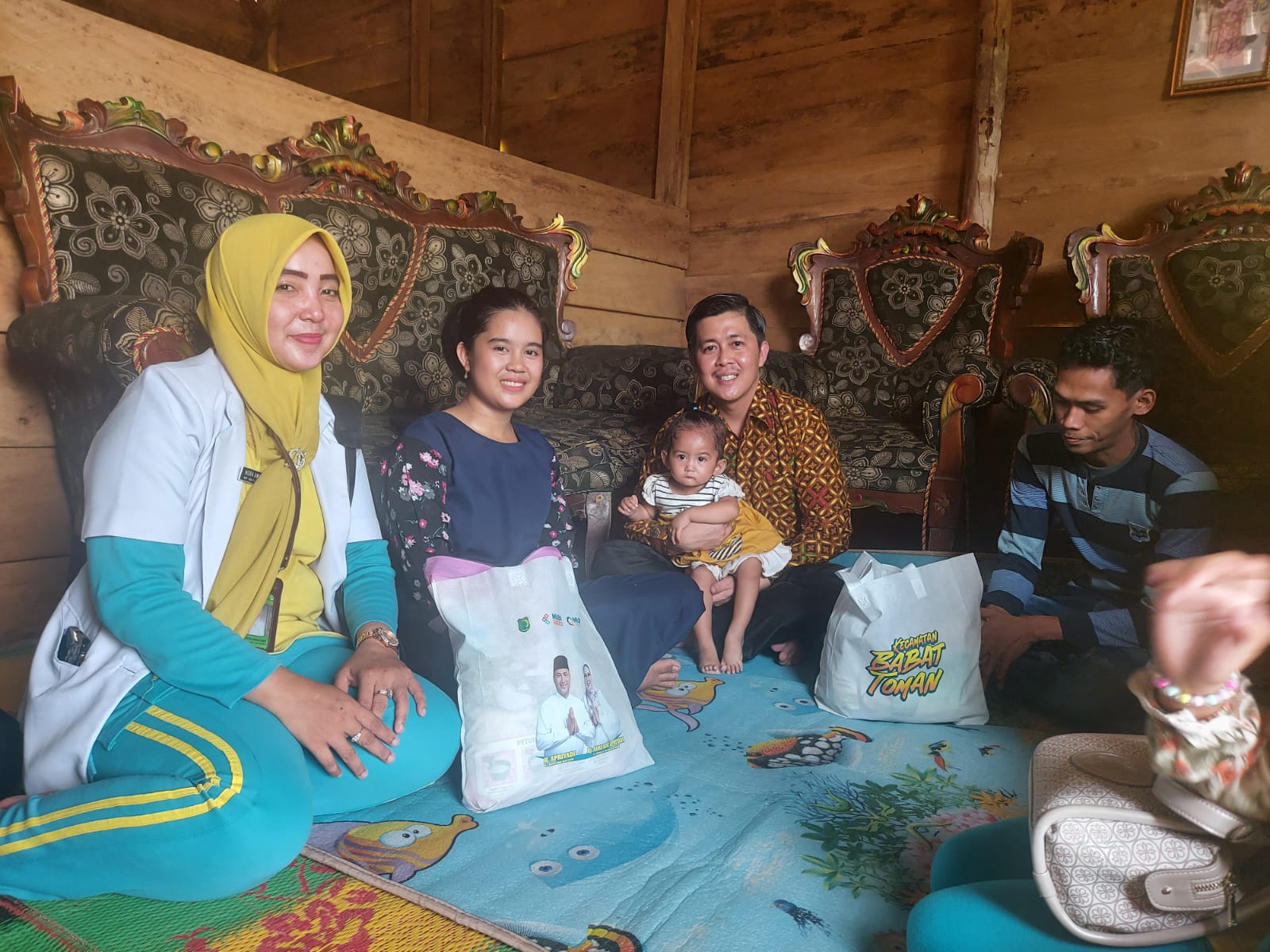 Mewakili Pj Bupati Muba, Camat Babat Toman Heru Kharisma SIP MSi mendatangi rumah orang tua Asiyah sambil menyerahkan bantuan makanan dan obat-obatan bersama petugas kesehatan setempat.