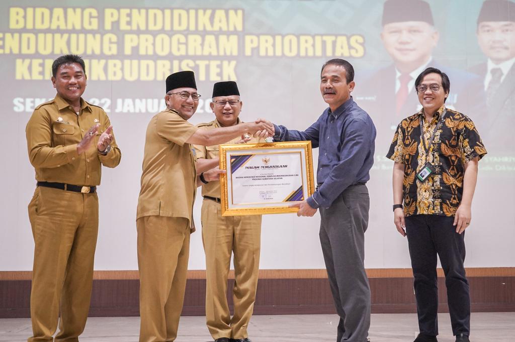 Pada kesempatan tersebut, Pj Bupati Muba meyerahkan piagam penghargaan kepada kepada Balai Penjaminan Mutu Pendidikan (BPMP) dan Badan Akreditasi Nasional Pendidikan Dasar Menengah (BAN S/M) Provinsi Sumsel, dalam rangka apresiasi program sekolah penggerak dan program guru penggerak, kolaborasi dan pendampingan akreditasi.