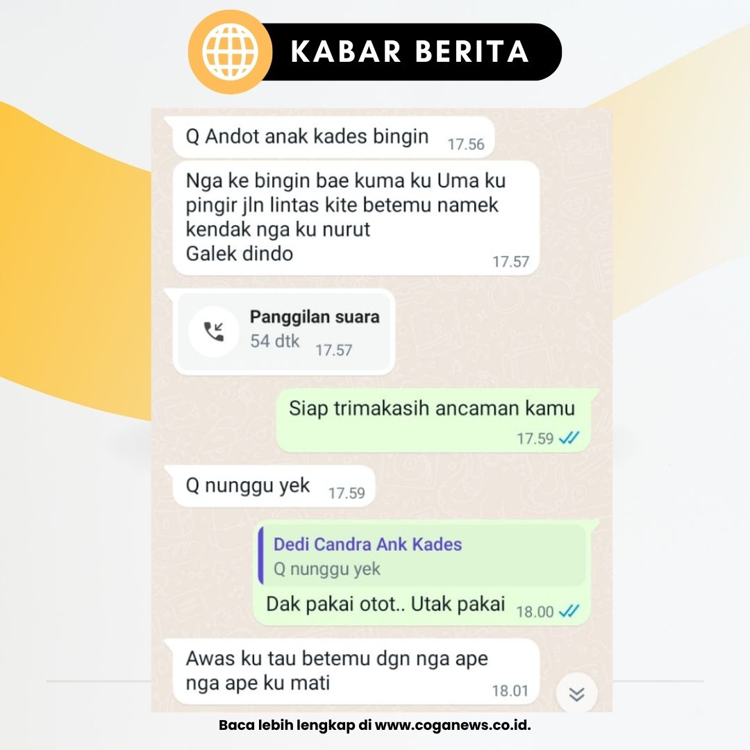 Pengancaman tersebut dilakukan oleh terduga anak dari sang Kades, yang merasa terusik akibat konfirmasi yang sudah dilakukan oleh awak media