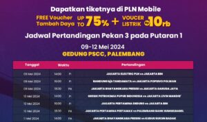 Palembang, 08 Mei 2024 – Pekan Ketiga Putaran Pertama PLN Mobile Proliga 2024 akan berlangsung pada 9-12 Mei 2024. Total terdapat 12 pertandingan yang akan digelar di Palembang Sport and Convention Center, Sumatra Selatan.