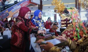 PALEMBANG – 3 juni 2024 – Penjabat Ketua Tim Penggerak PKK Kabupaten Musi Banyuasin (Muba) Hj Triana Sandi hadiri Launching Batik Bejumpe Berkilau sekaligus Fashion Show dan Pameran Produk UMKM, acara berlangsung di Opi Mall Jakabaring, Minggu (2/6/2024).