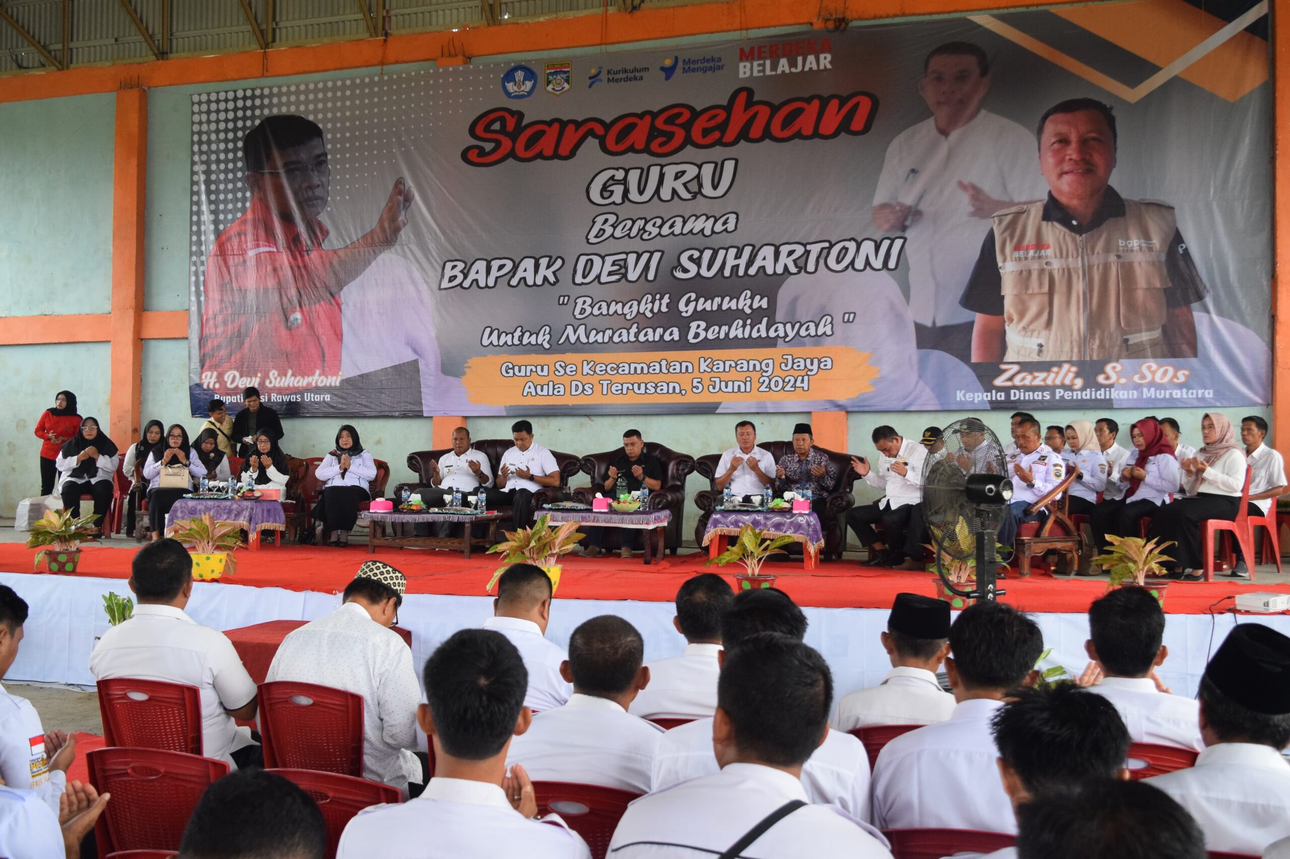 COGANEWS.CO.ID | MURATARA – Sarasehan Guru dalam wilayah Kecamatan Karang Jaya bersama Bupati Kabupaten Musi Rawas Utara (Muratara) H.Devi Suhartoni bertujuan membangkitkan kualitas pendidikan untuk Muratara Berhidayah.