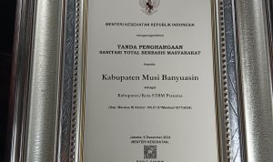 JAKARTA- Kabupaten Musi Banyuasin melalui Dinas Kesehatan Muba terpilih sebagai Penerima Anugerah Tanda Penghargaan Sanitasi Total Berbasis Masyarakat Pratama Tahun 2024 pada Kategori Stop Buang Air Besar Sembarangan.