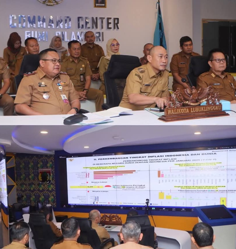 LUBUK LINGGAU | COGANEWS.CO.ID – Wali Kota Lubuk Linggau, H. Rachmat Hidayat, mengikuti rapat koordinasi (rakor) pengendalian inflasi tahun 2025 dengan sertifikasi produk halal yang diselenggarakan oleh Kementerian Dalam Negeri (Kemendagri) melalui zoom meeting, yang berlangsung di Command Center Pemkot Lubuk Linggau, Selasa (4/3/2025).