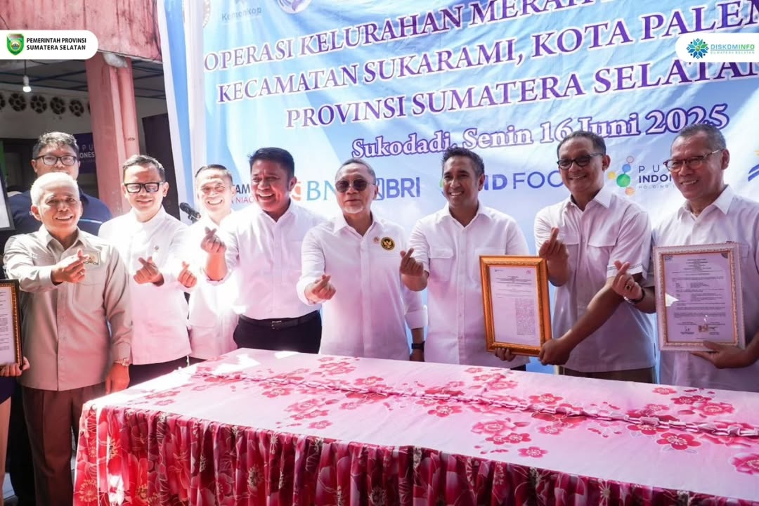 Palembang. Gubernur Sumatera Selatan, H. Herman Deru, mendampingi Menteri Koordinator Bidang Pangan RI, Dr. H. Zulkifli Hasan, dalam peninjauan Koperasi Kelurahan Merah Putih Sukodadi, Kecamatan Sukarami, Kota Palembang, pada Senin (16/6/2025). Kunjungan ini merupakan bagian dari upaya pemerintah pusat untuk memastikan program koperasi desa/kelurahan berjalan efektif di seluruh Indonesia.