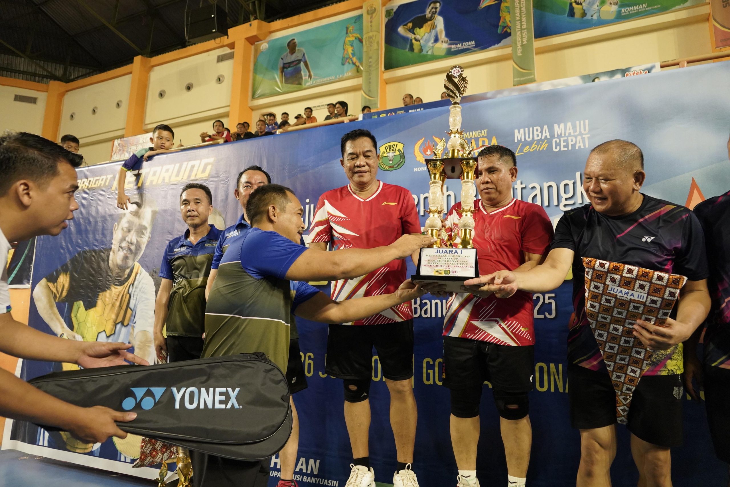 Pasangan Bupati Toha dan Kades Sereka Raih Juara 1 Kategori Eksekutif di Kejurda Bulutangkis Muba Cup 2025