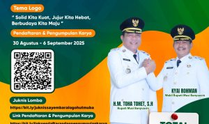 SEKAYU – Pemerintah Kabupaten Musi Banyuasin (Pemkab Muba) mengajak masyarakat berpartisipasi dalam Sayembara Desain Logo Hari Ulang Tahun (HUT) Muba ke-69 tahun 2025. Lomba yang berlangsung mulai 30 Agustus hingga 6 September ini menyediakan hadiah total Rp10 juta bagi para pemenang.