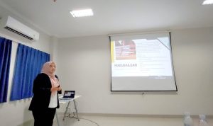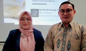 Ujian yang berlangsung di ruang sidang kampus C Program Pasca Sarjana Administrasi Rumah Sakit tersebut berjalan lancar. drg. Dina memaparkan penelitian tesis berjudul: