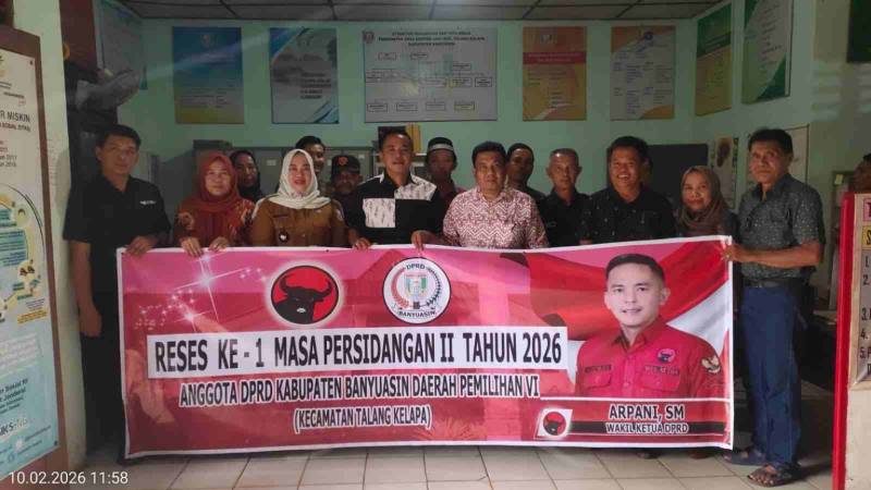 Banyuasin, Coganews.co.id – Wakil Ketua DPRD Kabupaten Banyuasin, Arpani, SM, melaksanakan kegiatan reses ke-1 Masa Persidangan II Tahun 2026 di wilayah Daerah Pemilihan (Dapil) VI Kecamatan Talang Kelapa. Kegiatan tersebut berlangsung selama empat hari, mulai tanggal 10 hingga 13 Februari 2026, dengan menyerap langsung aspirasi masyarakat di sejumlah desa dan kelurahan.
