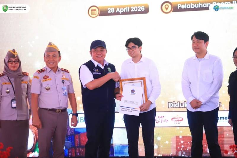 Coganews.co.id- Palembang, 28 April 2026 – Semangat kewirausahaan generasi muda di Sumatera Selatan (Sumsel) menunjukkan hasil nyata yang membanggakan. Gubernur Sumatera Selatan, H. Herman Deru, secara resmi melepas ekspor perdana produk turunan kelapa dan lada hitam produksi pengusaha muda yang tergabung dalam komunitas “Sultan Muda Sumsel”. Seremoni pelepasan ekspor yang menembus pasar Tiongkok, Taiwan, dan Prancis ini berlangsung di Pelabuhan Boom Baru, Palembang, Selasa (28/4/2026).